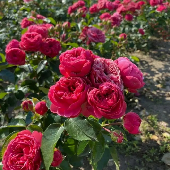 Срезочная роза, формирует длинные ровные цветоносы. Цветки некрупные, махровые, чашеобразные, розовой окраски, собраны в крупные кисти на концах побегов. Цветение до заморозков, формирует 3 волны цветения. Куст компактный, но мощный. Рекомендуется для групповых и одиночных посадок, подходит для промышленного выращивания на срезку.