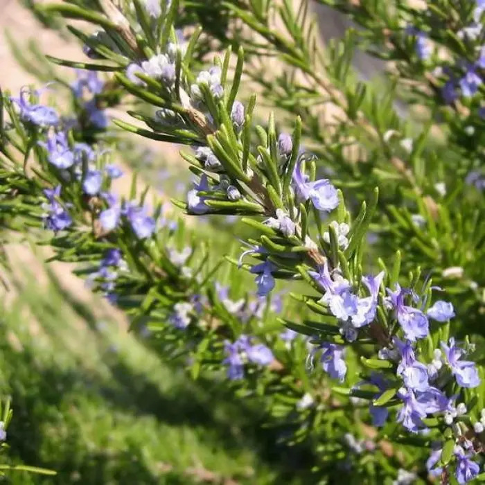 Rosmarius officinalis. Многолетний вечнозеленый кустарник из семейства Яснотковые. Тонкие зеленые листы, схожие с хвоей, издают душистый аромат. Высота растения 35 см. Цветение начинается ранней весной, и продолжается до 25 дней.