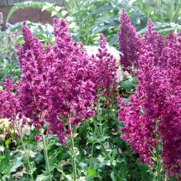 Сальвия дубравная (Шалфей Schwellenburg. Высота взрослого растения составляет 40 см, а ширина 30 см. Стебли растения тонкие, сочные и нежные, покрыты мелкими, цельными зелеными листьями. Цветки очень мелкие, простые, окрашены в лиловый цвет и собраны в колосовидные соцветия. Период цветения наступает в июне и длится по август. Цветки не имеют запаха.