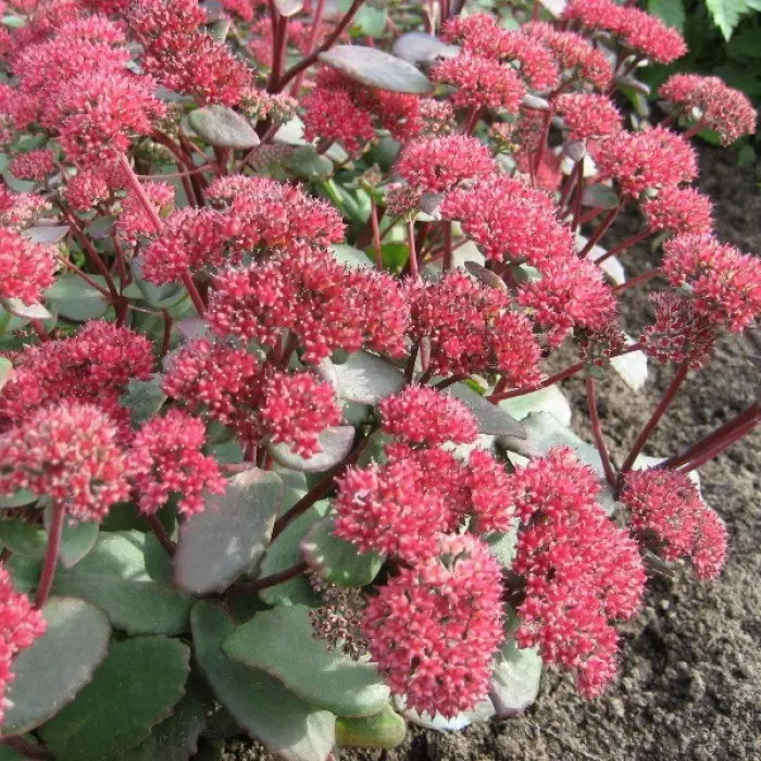 Седум (очиток) Red Cauli. Высотой до 60 см и диаметром до 40 см, с прямостоячими, сочными стеблями.