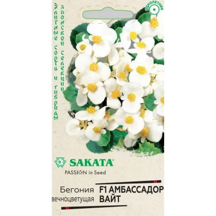 Семена Бегония Амбассадор Вайт F1 вечноцв. 5 шт. пробирка (а/ф Гавриш)