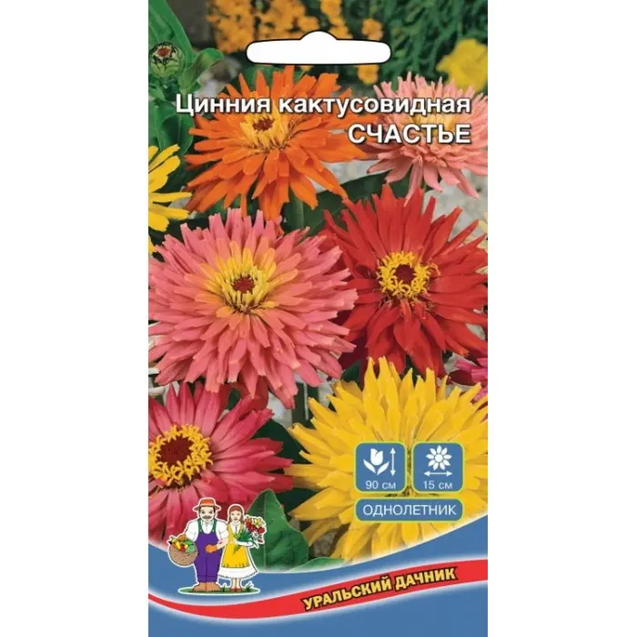 Семена Цинния Счастье - кактусовидная (а/ф Уральский Дачник)