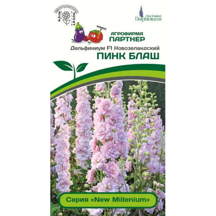 Новозеландские гибриды нового тысячелетия – настоящий эксклюзив, считаются лучшими в мире и являются мечтой многих! «Пинк Блаш» создан словно для королевского двора и для того, чтобы придать саду нотку элегантности. Растение достигает двухметровой высоты и короновано пышными соцветиями внушительных размеров - до 70 см. Нежный белый «глазок» в окружении махровых объятий пудрово-розового цвета делает цветок по-настоящему эталоном красоты. Серия «New Millenium» не боится непогоды, суровых морозов и сумела доказать удивительную выносливость, исключительную неприхотливость и долговечность. Представляет большую ценность для производителей срезки, флористов, ведь цветки сохраняют свежесть поразительно долго - до 20 дней, а соцветия отлично стоят в вазе. Дельфиниум идеален для заднего плана цветников, а группа таких красавцев на фоне газона произведет впечатление фонтана и подарит настоящее эстетическое удовольствие. При посадке растений в открытый грунт рекомендуемое расстояние между растениями 65-70 см.