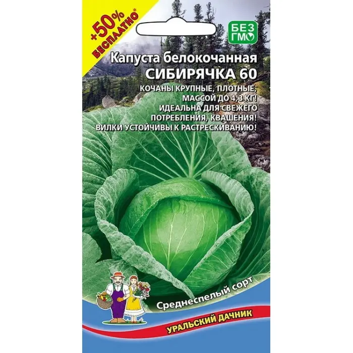 Семена Капуста белокочанная Сибирячка 60 (а/ф Уральский Дачник) +50%БЕСПЛАТНО