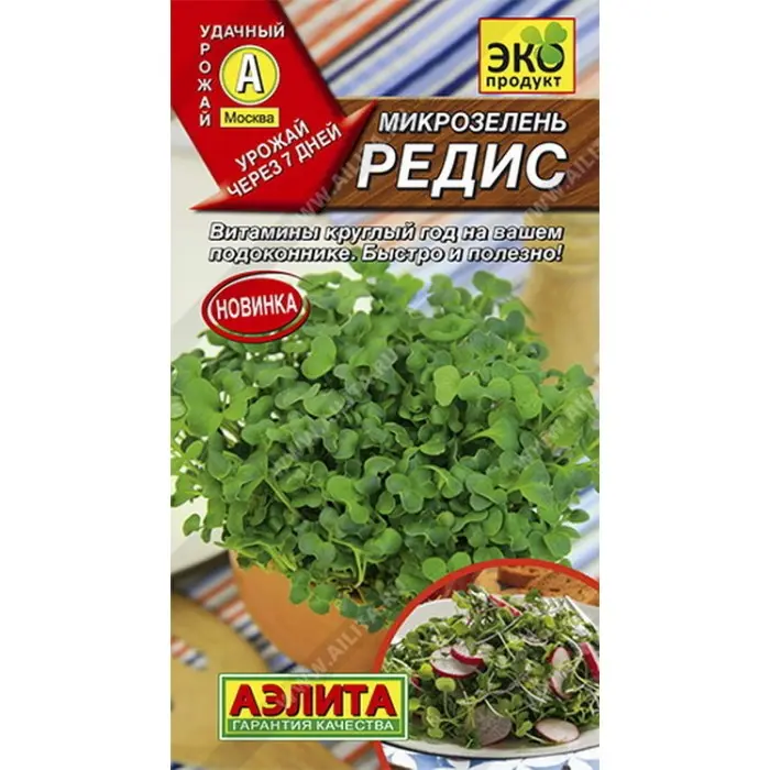 Микрозелень Редис. Микрозелень – молодые растения в фазе первой пары настоящих листьев. Пищевая ценность таких растений значительно выше, чем взрослых растений. Микрозелень содержит максимальное количество полезных макро- и микроэлементов, витаминов и других натуральных биологически активных веществ. Готова к срезке и употреблению на 7-9 день после посева!
