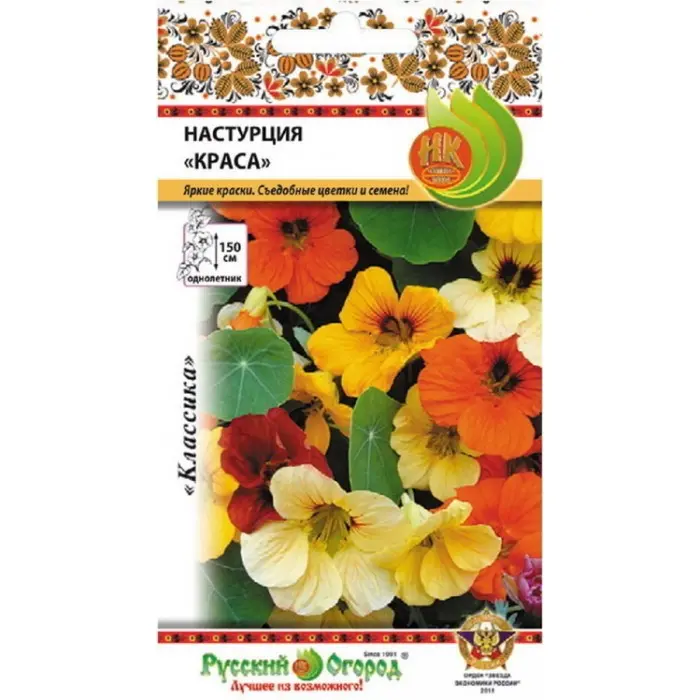 Эффектное быстрорастущее однолетнее травянистое растение с экзотическими цветками. Стебли до 150 см длиной, светло-зеленые. Прекрасно подходит для вертикального озеленения, великолепное украшение для беседок и шпалер. Красивые яркие цветы на длинных побегах создадут декоративную живую ширму. А зеленые недозрелые плоды настурции заменят каперсы и придадут пикантный вкус вашим блюдам.
