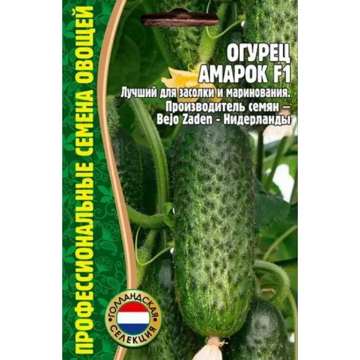 АМАРОК F1 - Ранний высокоурожайный партенокарпический гибрид. 40-45 дней от высадки рассады. Зеленец красивого зелёного цвета, крупнобугорчатый, хрустящий. Свежее потребление, засолка, маринование. Отличное качество и плотность позволяют мариновать плоды без потери качества. Универсальный, подходит для открытого грунта и теплиц. Гибрид обладает высокой степенью устойчивости к парше огурца или кладоспориозу плодов огурца (Ccu), мозаике огурца (CMV) а так же средней степенью устойчивости к мучнистой росе (Px), пероноспорозу или ложной мучнистой росе (Pcu), вирусу желтухи огурца (CVYV).