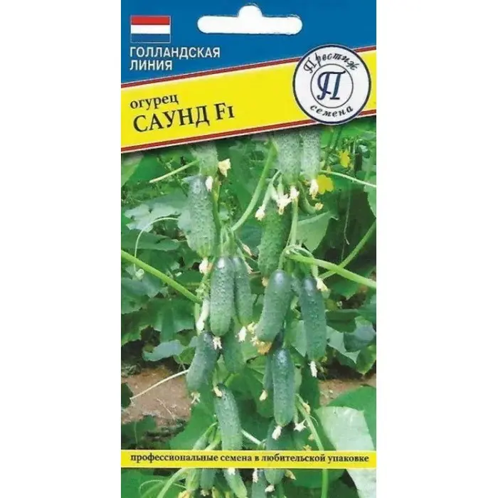 Огурец Саунд F1 – гибридный сорт раннего срока созревания, партенокарпик. Плодоношение наступает через 45-50 дней после появления сеянцев. Зеленцы корнишонного типа, массой до 100 г, ровные. Кожица зеленая с мелкими бугорками. Завязи образуются в мелкоплодных кустах (по 3 зеленца). Вкус приятный, мякоть упругая, ароматная, хрустящая. Сорт прекрасно развивается при выращивании через рассаду, возможен посев сразу в открытый грунт. Огурец Саунд F1: преимущества Отличный сорт для изготовления солений и маринадов. Кожица при переработке не теряет насыщенную зеленую окраску. Гибрид показал высокую устойчивость к грибковым инфекциям, а также среднюю сопротивляемость вирусу огуречной мозаики.