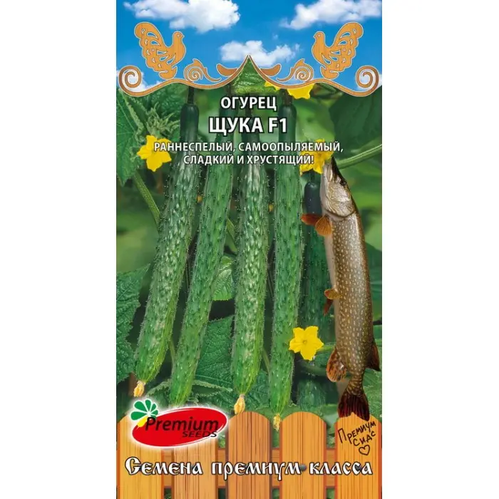 Эта щука не кусает – огурцом на стол свисает! Раннеспелый (45-48 дней от всходов до плодоношения), самоопыляемый гибрид для теплиц и открытого грунта. Растение преимущественно женского типа цветения, с короткими междоузлиями. Плоды с тонкой кожицей, хрустящие, сочные, сладкие и ароматные, долго сохраняют свои товарные качества после сбора. Гибрид прекрасно переносит перепады температуры и влажности, обладает устойчивостью к основным болезням огурца.