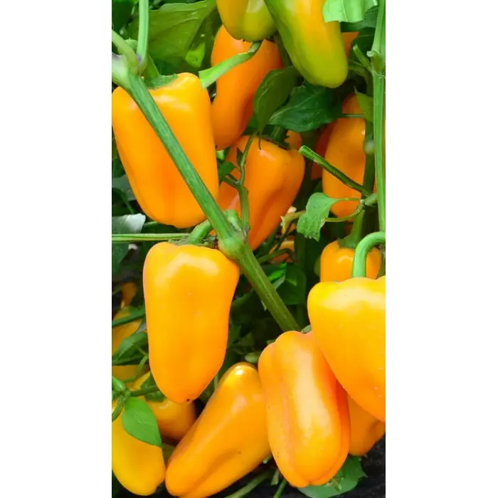 Это связано с внешним видом спелых перцев: все они имеют одинаковую форму, размер и цвет. Плоды окрашены в насыщенный, канареечный желтый оттенок, имеют кубовидно-удлиненную, пониклую форму. На каждом кустике (h-60 см) формируется 7-10 четырехкамерных плодов, толщиной стенок 8-10 мм.