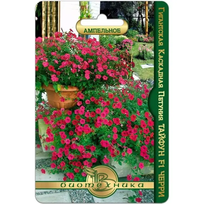 Семена Петуния гигантская каскадная Тайфун F1 Черри (а/ф Биотехника)