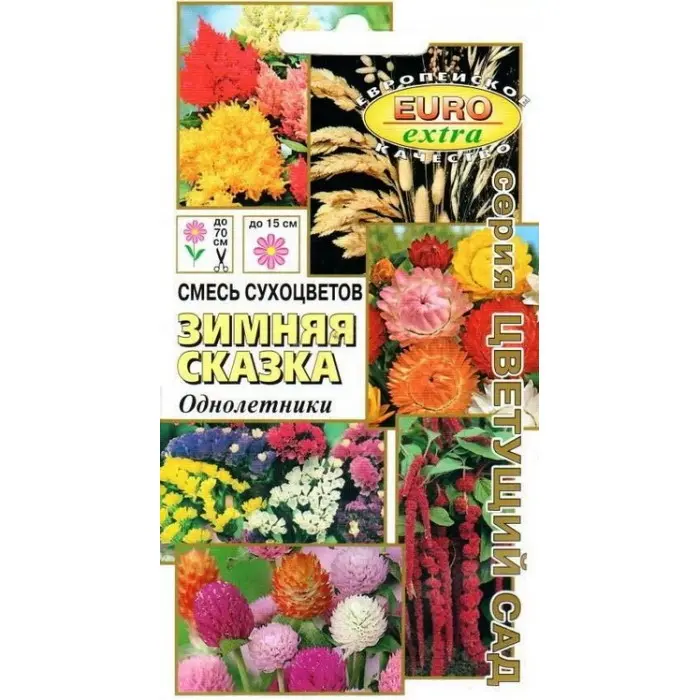 Сухоцветы, входящие в состав предлагаемой нами смеси (статица, физалис, амарант, гомфрена, гелихризум, ксерантемум, бриза, целозия, нигелла, злаковые) неприхотливы, легко выращиваются.