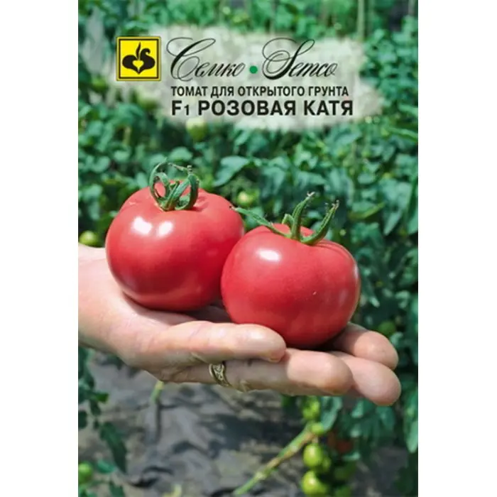 Томат Розовая Катя F1 - ранний, детерминантный гибрид томата для открытого грунта. От всходов до созревания 80–85 дней. Растение высотой 60–70 см. Соцветие с 5–6 плодами. Плоды округлые, массой 120–130 г, плотные, гладкие, без зеленого пятна, со сочленением с плодоножкой, устойчивы к растрескиванию, лежкие, транспортабельные. В технической фазе спелости плоды томата Розовая Катя F1 светло-зеленые, в биологической – розовые. Этот гибрид томата отличается высокой дружностью плодоношения. Вкусовые качества плодов отличные. Жаростойкий. Устойчив к вирусу томатной мозаики (ToMV), вертициллезному увяданию (Va, Vd) и фузариозному увяданию (Fol 1–2), альтернариозу (Asc), фузариозной гнили корней (For), бактериальной пятнистости (Pst). Схема посадки 70х30 см. Гибрид томата Розовая Катя F1 предназначен для открытого грунта и пленочных теплиц. Урожайность томата в открытом грунте 8–10 кг/м2, в пленочной теплице 16–18 кг/м2.