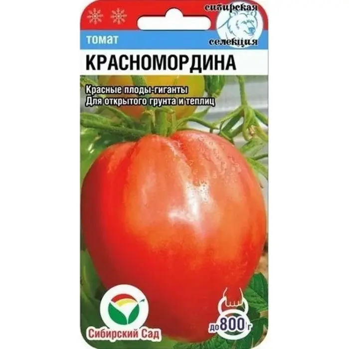 Среднеранний сорт сибирских селекционеров (созревание наступает на 114 день после появления всходов), привлекающий внимание ценителей томатов-гигантов увесистыми ярко-красными плодами массой до 800г. Дает стабильно высокие урожаи в условиях Сибири, в открытом и в защищенном грунте. Растение детерминантное (высотой до 1 м в открытом грунте, до 1,5м в условиях теплицы). Плоды сердцевидной формы весом 400-800г завязываются через 1-2 листа. Зрелые томаты красивые, насыщенно красные, вкусные сахаристыми на излом с очень малым количеством семян. Оценка вкусовых качеств 5 баллов (по 5 бальной cистеме). Отдача урожая дружная уже к 1 августа в условиях Сибири может быть собрано до 92% плодов съемной спелости. Урожайность высокая около 10 кг/м2.