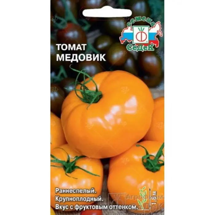 Раннеспелый (90-110 дней) сорт для выращивания в открытом грунте и пленочных теплицах. Растение детерминантное, в теплице высотой 1,6 м. В кисти 4-6 плодов. Плоды плоскоокруглые, слегка ребристые, оранжевые, массой 150-200 г, среднеплотные, сочные, ароматные, с фруктовым оттенком, очень вкусные. Урожайность составляет 5-6 кг/м2. Ценность гибрида: устойчивость к болезням и неблагоприятным погодным условиям, высокое содержание каротина, диетические свойства. Рекомендуется для употребления в свежем виде и переработки на томатопродукты.