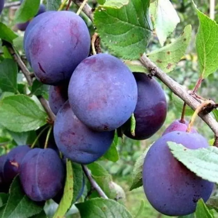Плоды слегка вытянутые, некрупные – их средний вес варьируется от 20 г до 35 г. Окрас кожицы темно-фиолетовый, поверхность слив покрыта восковым налётом. Сорт плодоносит на букетных веточках и однолетних приростах. Мякоть плодов жёлтая, с зеленоватым оттенком. Она плотная, сочная и довольно легко отделяется от косточки. Вкус этого сорта умеренно сладкий, но при этом ощущается лёгкая кислинка. Первое плодоношение сливы приходится на третий год жизни после высадки в открытый грунт.