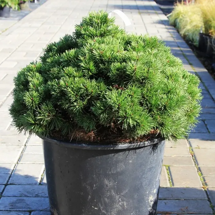 Сосна горная Allgau. Карликовый сорт подушкообразной формы, плотный, компактный. Растёт медленно, годовой прирост 3-5 см, к 10-ти годам высота 40 см и ширина 50 см. Побеги жёсткие короткие. Хвоя тёмно-зелёная, колючая, часто изогнутая, в пучках по 2 хвоинки. Шишек не образует. Место солнечное. Требования к почве низкие. Сорт чрезвычайно устойчивый к неблагоприятным погодным условиям. Зона зимостойкости 4.