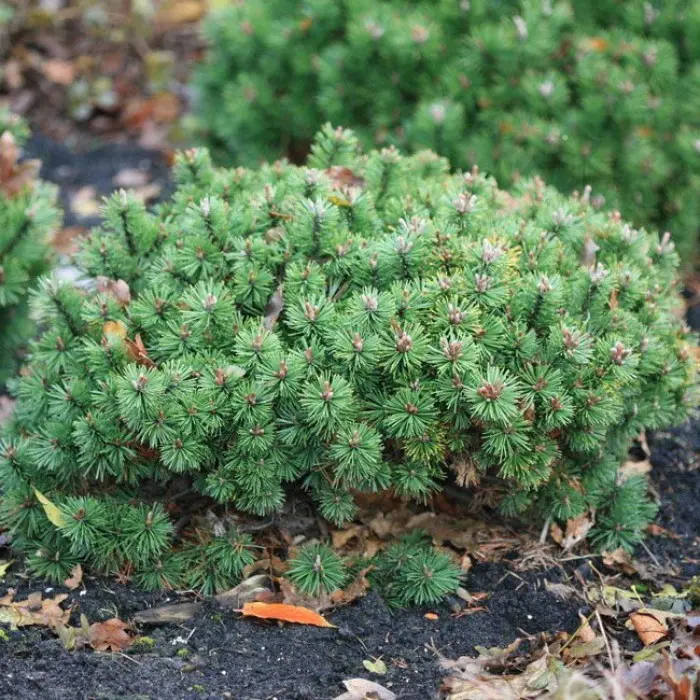 Сосна горная Humpy. Карликовый подушковидный медленно растущий хвойный кустарник, с широкораспростертой кроной (Humpy - пер. Бугристый). Появился довольно недавно и еще не набрал достаточной популярности. В начале имеет округлую шаровидную крону, позже начинает расти в ширь. Растет очень медленно, по 4 см в год. Высота растения около 0,8 м и диаметр до 1,5 м. В 10 лет высота 0,3 м и ширина кроны 0,5 м.