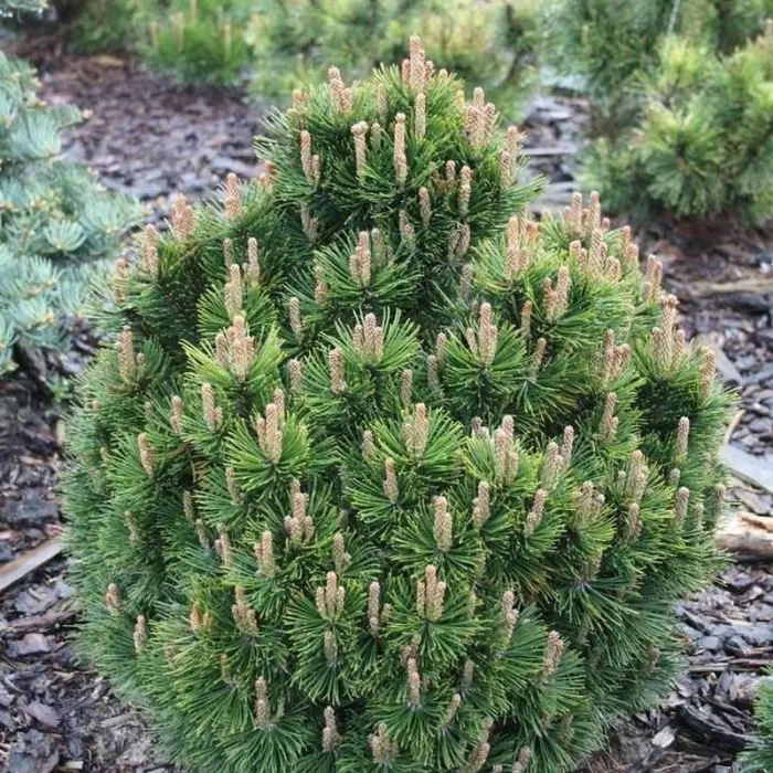 Сосна горная Leuco-like. Сосна ширококонусовидной формы. Крона компактная. Растёт медленно. Через 10 лет высота 100 см и диаметр 60 см. Хвоя тёмно-зелёная. Рекомендуется для посадки в небольших приусадебных участках, альпинариях, для выращивания в контейнерах. Место солнечное. К почве нетребовательна. Зона 3 (до -34?С).