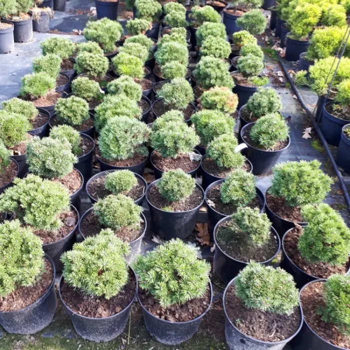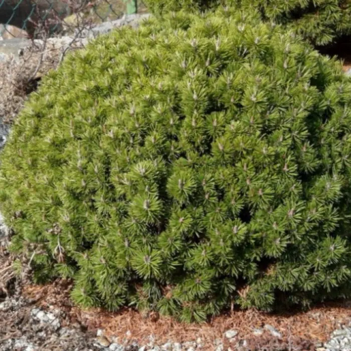 Сосна горная Mini Mops. Карликовый хвойный кустарник с густой подушкообразной кроной. Растёт очень медленно, ежегодный прирост в высоту 2 см, в ширину — 3 см. Достигает 0,3-0,4м в диаметре. Побеги светло-зеленые. Кора от серовато-бурой до темно-серой. Хвоя тёмно-зеленая, игольчатая, острая, плотная, расположена в пучках по две, 3 см длиной. Светолюбивое растение, но может выносить лёгкое затенение. К почвам нетребовательно, может расти на каменистых почвах, выносит застой влаги и кислые почвы. Рекомендуется для одиночных и групповых посадок, для альпинариев и японских садов.