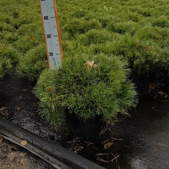 Сосна горная Mughus. Медленнорастущая сосна, достигает к 30 годам около 2 м высоты, при схожем диаметре, очень изменчива. Ветви короткие, приподнимающиеся.