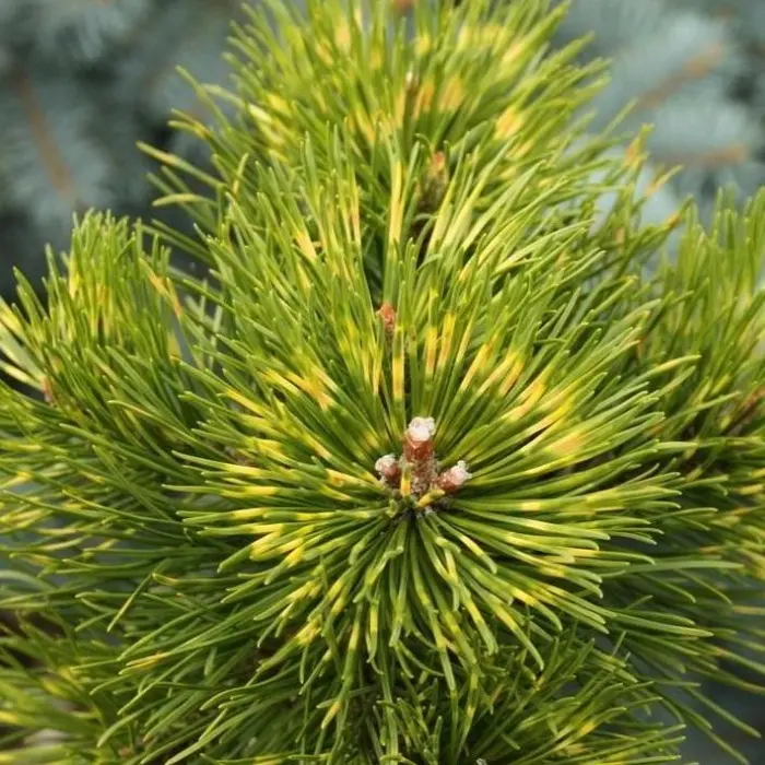 Сосна горная Sunshine. Название этой горной сосны переводится с английского как «Солнечный свет». Дано ей такое название из-за очень интересного, двухцветного окраса хвои. Иглы как будто прорисованы кисточкой: половина иголочки желтая, половина — зеленая. И этот контраст дает эффект свечения. В саду сосенка как будто горит и переливается. Этот эффект не зависит от сезона. Медленный рост, красивый куст у взрослого растения, не избитый окрас — всё это делает сосну «Саншайн» абсолютным хитом.