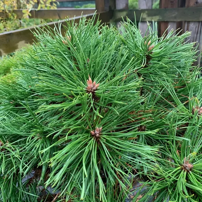 Сосна горная Varella. Высота взрослого дерева 1-1,5 м, шириной 1,2 м. В 10 лет высота 0,7 м, при диаметре кроны 0,5 м. Годовой прирост до 10 см.