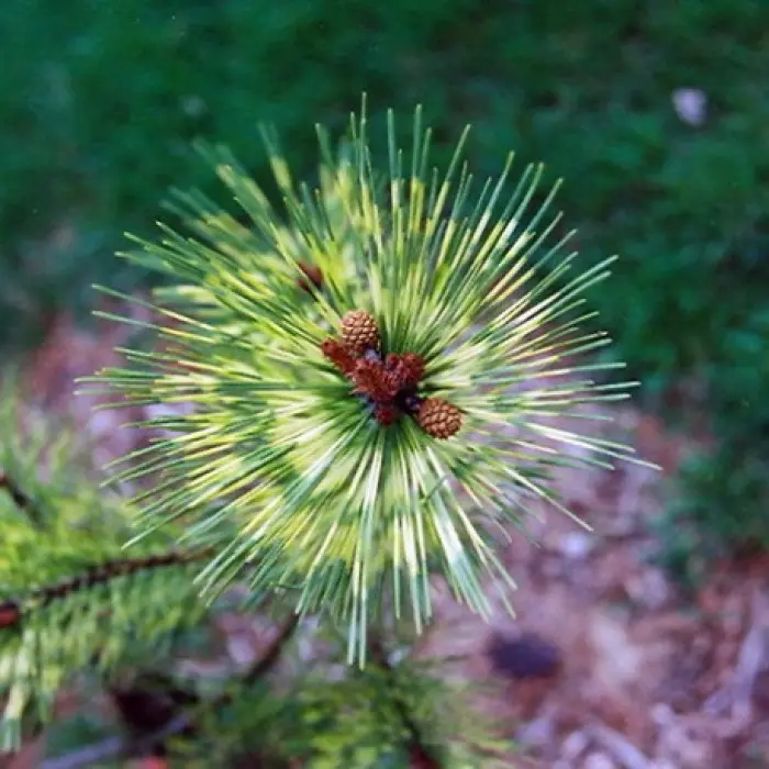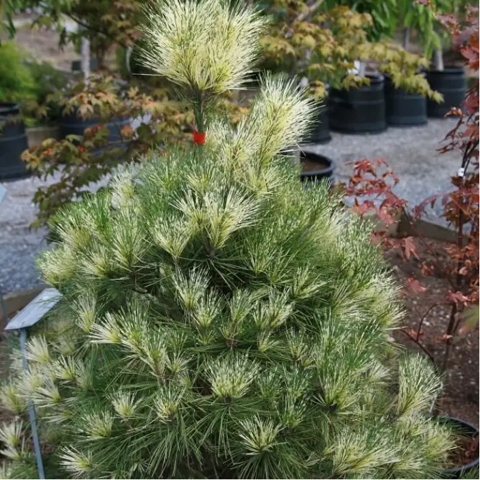 Сосна густоцветковая Oculus Draconis. Изумительно декоративный сорт сосны с двухцветной хвоей.