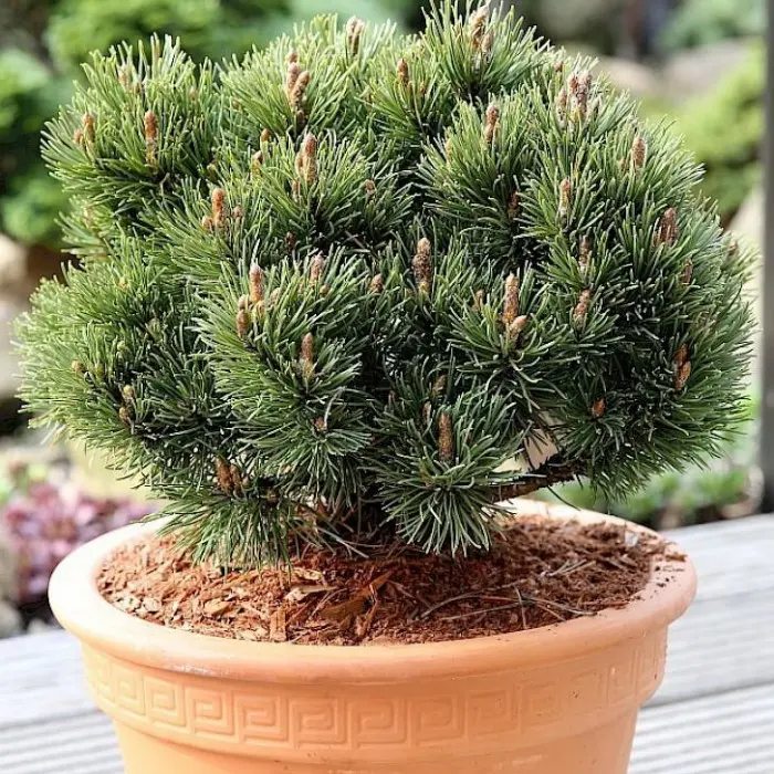 Сосна крючковатая Heideperle. Эффектный карликовый вечнозеленый кустарник высотой до 40 см. Крона плотная, сферическая.