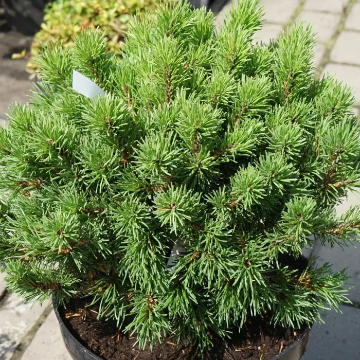 Сосна крючковатая Comраcta. Многоствольный медленнорастущий кустарник. В 10-летнем возрасте достигает 0,6 м в диаметре. Форма кроны подушковидная и компактная. Хвоя короткая, острая, жесткая, собрана в пучках по 2 шт, тёмно-зелёная. Шишки небольшие, около 2 см длиной, яйцевидные, появляются достаточно редко. Растёт медленно, годовой прирост 2-3 см.