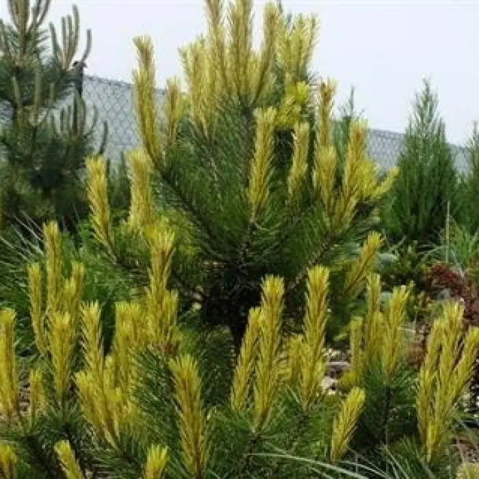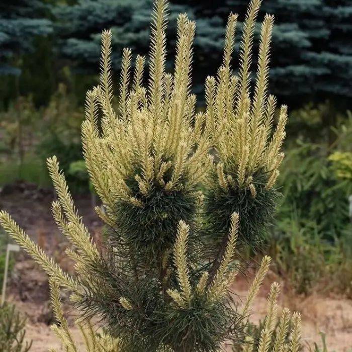 Сосна обыкновенная Bialogon. Сосна красивой конусовидной формы. Растёт быстро. Годовой прирост 30-40 см. К 10-ти годам высота около 3 м и диаметр 2 м. Взрослое растение высотой 6-7 м. Хвоя серо-зелёная. Молодой прирост интенсивно кремово-белого цвета. Место солнечное или полутенистое. Почва влажная, дренированная. Зона 3 (до -34?С).