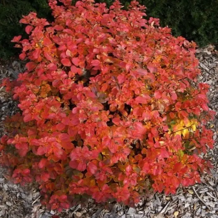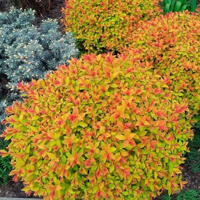 Спирея японская Firelight. Небольшой, компактный лиственный кустарник. Высота взрослого растения - до 0,6 м., диаметр кроны - до 1 м. (редко - чуть больше). Крона - округлая. Листья - эллиптические, очень декоративные (т.к. меняют свою окраску в течение вегетативного сезона). Молодые листья - оранжево-красного цвета, позже они становятся оранжево-жёлтыми, а затем салатовыми или светло-зелёными, осенью же листья окрашиваются в красные тона. Цветёт в конце июня - августе. Цветки - мелкие, насыщенно-розовые; собраны в щитковидные соцветия.