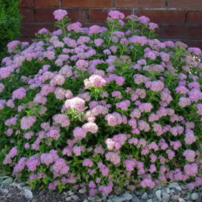 Спирея японская Little Princess. Декоративный карликовый кустарник с широко куполовидной кроной, достигает до 0,8 м в высоту и до 1,2 м в диаметре. Медленно растущий сорт: ежегодный прирост 10 см. Листья зеленые осенью окрашиваются в оранжево-красные тона, продолговато-яйцевидные. Цветки светло-пурпурно-розовые, мелкие, собраны в щитковидных соцветиях. Цветет обильно в июне-июле и продолжительно до сентября. Продолжительность жизни 30 лет.