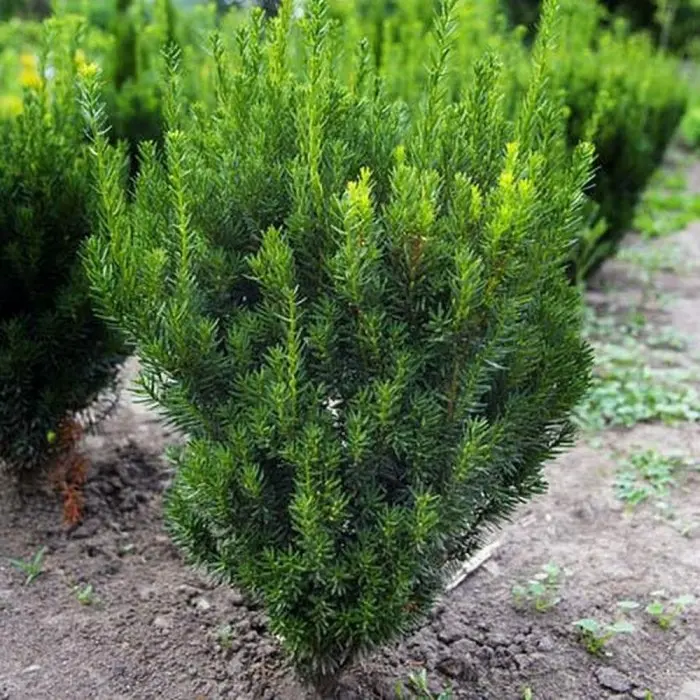 Тис средний Hillii. Декоративные, вечнозеленый, медленнорастущий хвойный кустарник. Ветви узкопирамидальные, сильные, крона плотная, компактная, форма колонновидная. Побеги густые , жесткие, укороченные до 1,5 м. Хвоя линейная, игловидная, заостренная, ориентирована радиально, густо покрывает побеги, окраска ярко-зеленая, 20-22 мм. Корни обильно ветвятся, сильные, распростертые. Хорошо переносит формирование и стрижку. Хорошо чувствует себя в тени.