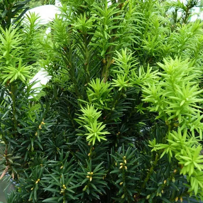 Тис средний Hillii. Декоративные, вечнозеленый, медленнорастущий хвойный кустарник. Ветви узкопирамидальные, сильные, крона плотная, компактная, форма колонновидная. Побеги густые , жесткие, укороченные до 1,5 м. Хвоя линейная, игловидная, заостренная, ориентирована радиально, густо покрывает побеги, окраска ярко-зеленая, 20-22 мм. Корни обильно ветвятся, сильные, распростертые. Хорошо переносит формирование и стрижку. Хорошо чувствует себя в тени.