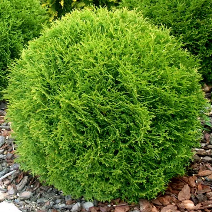 Туя западная Danica - это карликовый сорт туи с шаровидной и компактной кроной. Круглый год хвоя насыщенного темно-зеленого цвета.