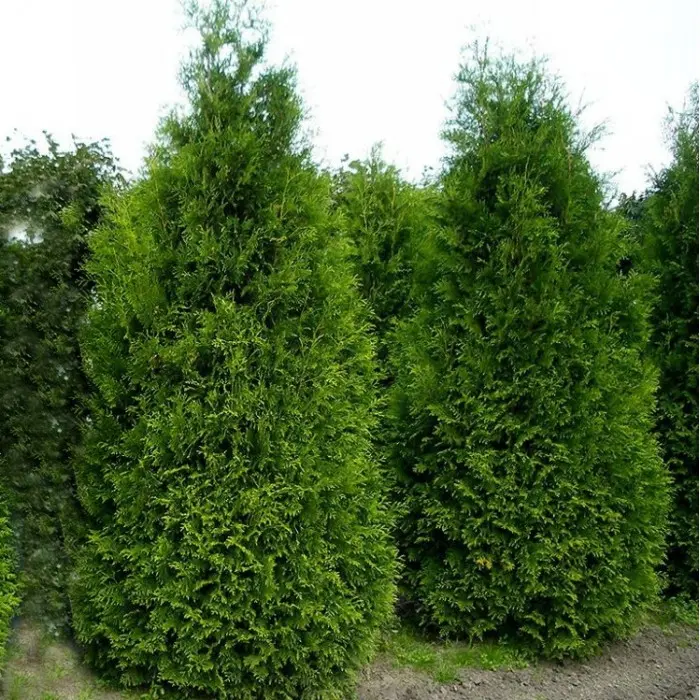Туя западная King of Brabant. Одна из новых форм известного сорта «Brabant». Отличается сильным ростом (30 см в год), прямостоячим габитусом и без обрезки принимает узкую коническую форму. Крона очень компактная и плотная. Все молодые побеги растут вертикально. К 10-ти годам высота 300-350 см и ширина 100 см. Взрослое дерево дорастает до 9 м. Хвоя тёмно-зелёная. Сорт очень выносливый, высокоустойчив к болезням и вредителям. Место солнечное или слегка затенённое. Почва плодородная, влажная. Зона 3 (до -34°С). Рекомендуется для живых изгородей, а также для выращивания в контейнерах.