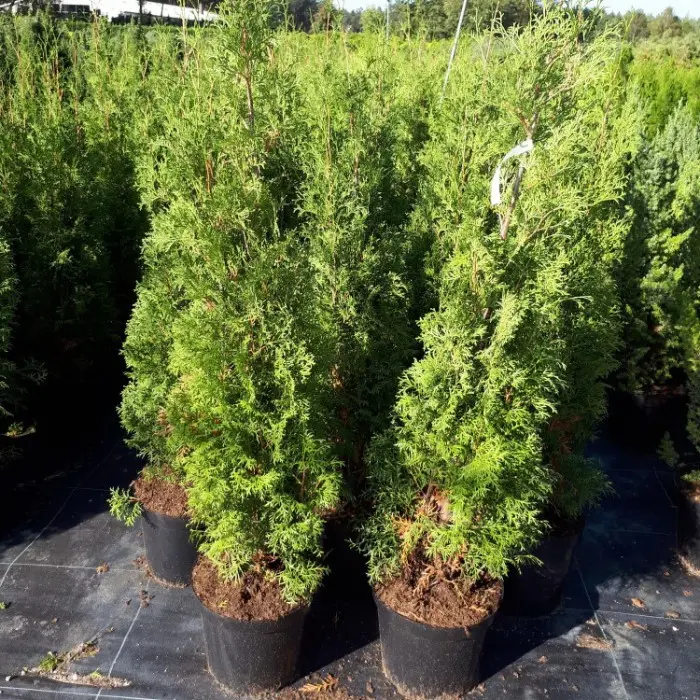 Туя западная Malonyana - представляет собой колонновидную разновидность туи. Узкая вертикальная быстрорастущая форма. Цвет ярко-зеленый насыщенный. Густая хвоя. В отличие от других сортов, туя Малониана – это высокое стройное дерево, которые вырастает до 10 и более метров, имеет диаметр кроны до 3 м.