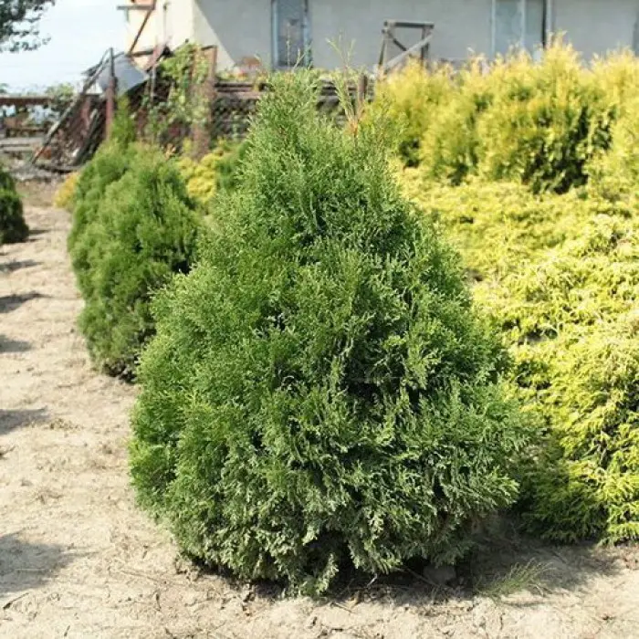 Туя западная Miky. Высота до 12–20 м и диаметр кроны до 3–4 м, к 10-ти годам высота 80 см. Форма кроны в молодости пирамидальная, с возрастом более рыхлая, яйцевидная.
