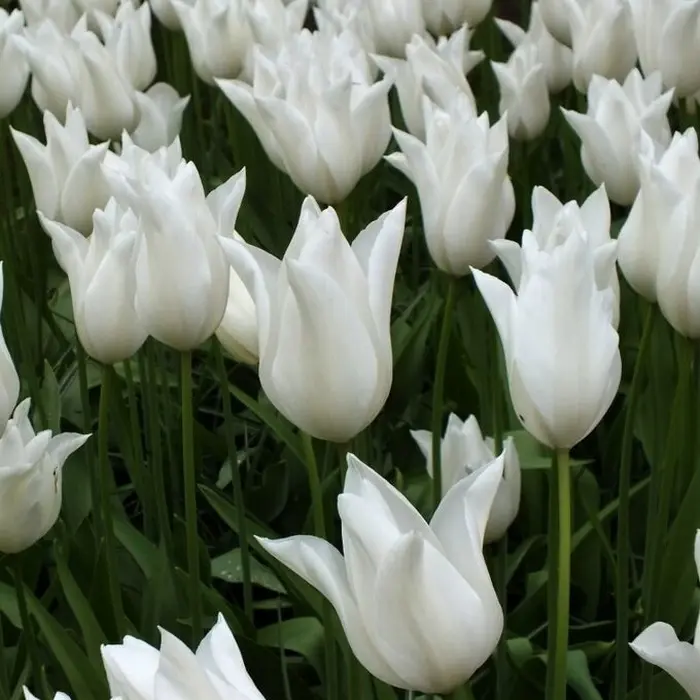 Тюльпан Баллада Вайт лилиецветный. Высокий бокал с остроконечными, отогнутыми наружу лепестками. Высота бокала до 10 см. Цвет тюльпана белоснежный, при роспуске напоминает яркую звезду. Продолжительность цветения: до 2-3 недель. Отлично растет на хорошо освещенном месте и в полутени. Высота до 60-70 см.