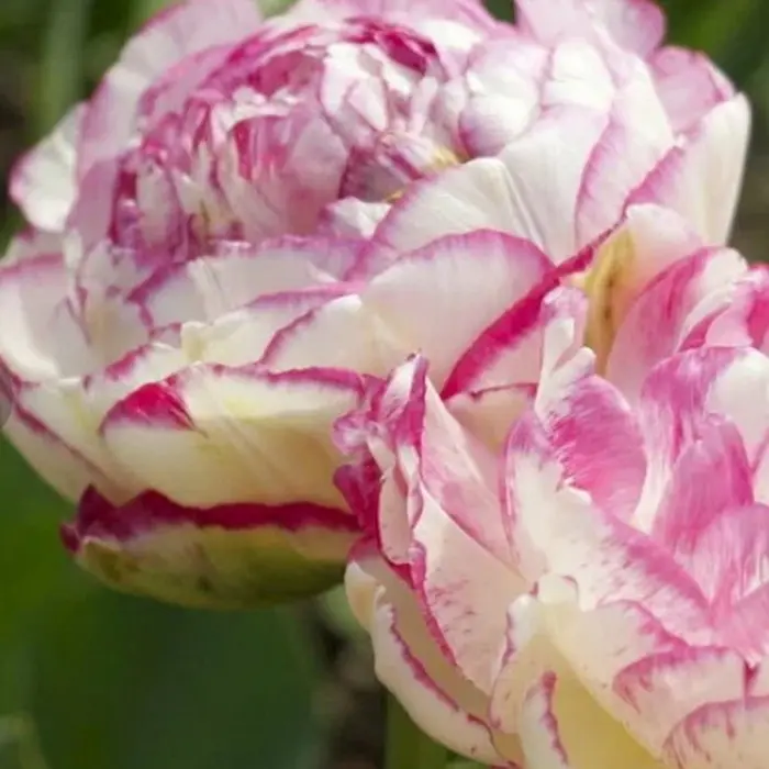 Тюльпан Дабл Тач относится к махровым поздним сортам. Цветет в мае, образуя пышный крупный бело-кремовый бутон с темно-розовой каймой по краям лепестков, высотой до 6-8 см. В раскрытом виде цветок достигает в диаметре до 9 см. Продолжительность цветения - до 2-3 недель. Красивый и нежный цветок тюльпана возвышается на крепком стебле, высотой 40 см.