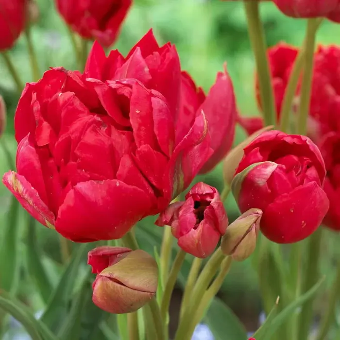 Тюльпан Эстатик многоцветковый 5шт Ярчайшие алые бутоны этого махрового сорта выглядят неподражаемо аристократично. Неоценимо для центральных клумб и особенно срезки. Эстетик - букет на одном стебле. В среднем одновременно распускаются 5 алых шаров. Тюльпан относится к группе махровых ранних тюльпанов, а значит, с самого начала тёплых солнечных дней он раскроется и порадует своими плотными соцветиями. Высота: 40-50 см.