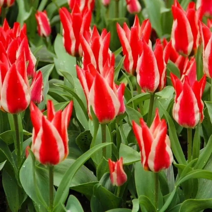 Невысокий сорт с неожиданно крупными цветками. Внешняя сторона лепестков имеет розовато-красный оттенок, а по краю лепестка проходит полоса цвета слоновой кости. Со временем на полосе появляются светло-красные штрихи, что создает впечатление перехода цвета. Донце цветка лимонно-желтое с зелеными пятнами. Уникальная листва с фиолетовыми вкраплениями выгодно подчеркивает оригинальность этого сорта. Высота тюльпана 20-25 см.