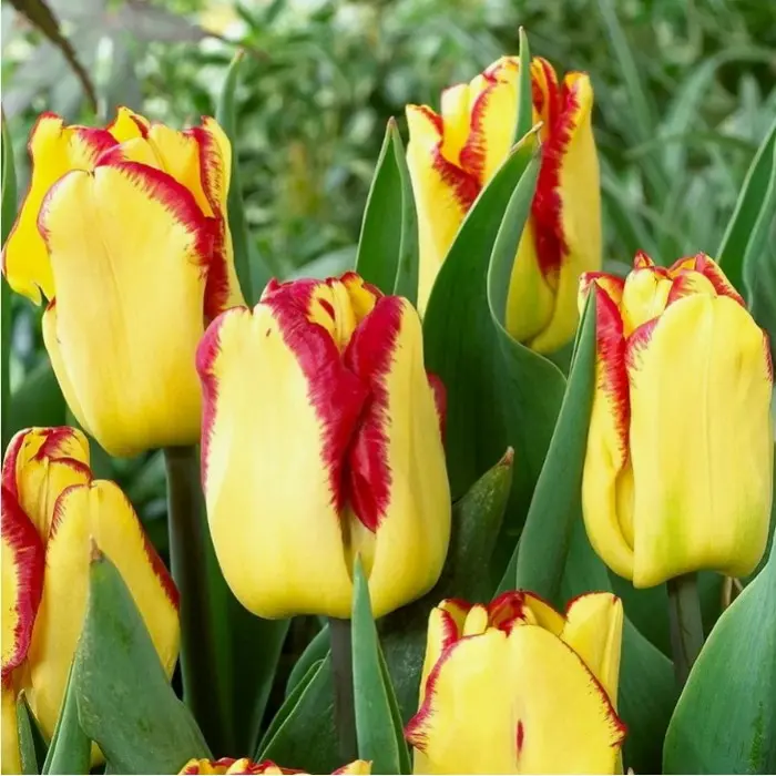 Тюльпан Кейп Таун имеет удивительные двухцветные цветки: они желтые с контрастными красными краями и вкраплениями. Обладает неповторимым ароматом. Цветок крупный, классической бокаловидной формы. Размер бокала: высота около 7 см, а диаметр - около 5 см. Зацветает в конце апреля, продолжительность его цветения – около 10 дней (в зависимости от погодных условий). Идеально подходит для получения срезки высшего качества, причем не только в открытом грунте, но и в выгонке (в средние и поздние сроки). Он достигает высоты около 50 см.
