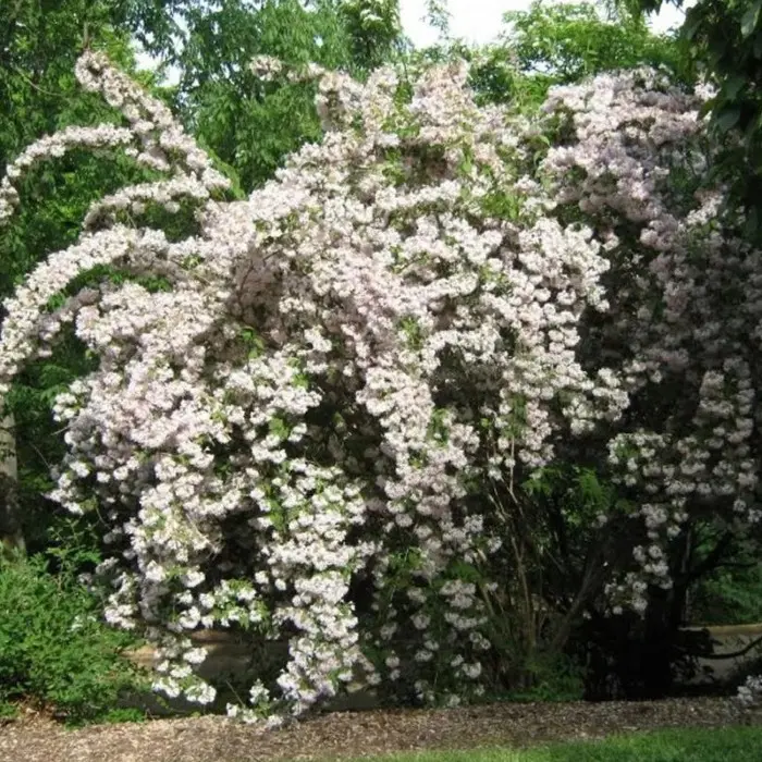 Вейгела цветущая Candida. Широкий раскидистый кустарник до 2м высотой и до 3м шириной. Годовой прирост до 30см. Обильно цветет в начале лета белыми крупными колокольчатыми до 4см длиной белоснежными цветками, иногда с легким розоватым оттенком, собранными в соцветия по 3–4 шт. Листья светло-зеленые, длиной 6-10 см овальные, заостренные, осенью долго остаются на ветвях. Любит солнечные места, плодородные дренированные почвы.
