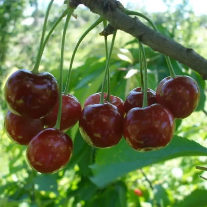 Мякоть красная, нежная, сочная. Вкус очень хороший, кисло-сладкий. Косточка среднего размера, овальной формы, гладкая, хорошо отделяется от мякоти.