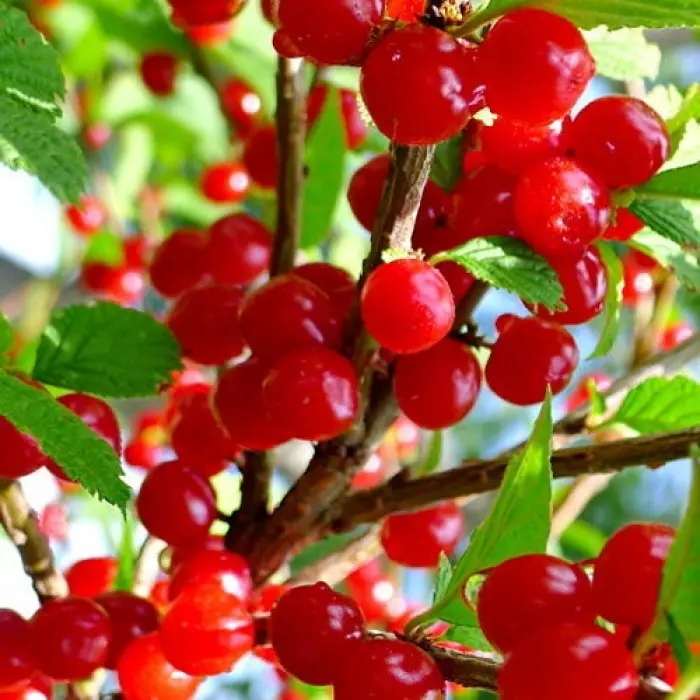 Плоды крупные, средняя масса плода 2,5 г, максимальная 4,0 г. Форма округло-плоская с ясно выраженным швом. Поверхность плодов ровная, слегка опушенная. Воронка широкая, неглубокая. Плодоножка короткая. Окраска красная, слегка бледноватая. Кожица тонкая и не отделяется от мякоти. Мякоть довольно густая, красная, сладковато-кисловатого вкуса. Плоды хороши для употребления в свежем виде и приготовления сока, варенья, вина. Созревают 18-22 июля. На растении сохраняются до высыхания мякоти. Сок розовый.