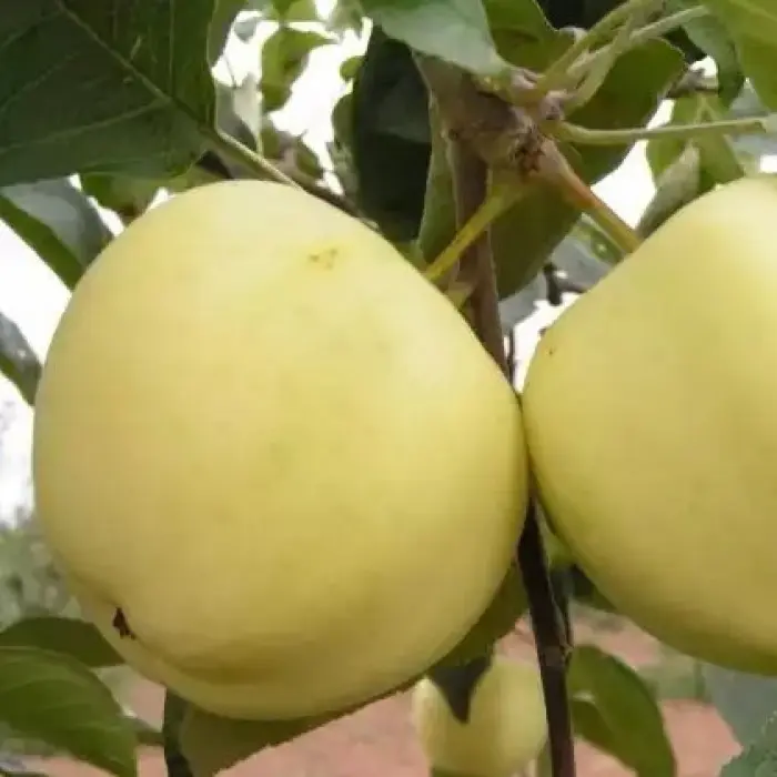 Плоды молодого дерева белого налива более крупные, весом до 150 г. Имеют коническую форму с четко выраженными ребрами. Спелые яблоки светло-желтого цвета с зеленоватым оттенком, в период полного созревания могут иметь небольшой белый налет. Мякоть кисло-сладкая, белая и очень мягкая, а семенная коробочка наполнена ароматным соком. Яблоня Белый налив начинает плодоносить уже на 3-4 год после посадки. Первый урожай начинает созревать в начале или средине июля, но хранится он не долго (не более месяца). Из-за своей мягкости плоды практически нетранспортабельны, а от надавливаний на них появляются коричневые пятна.