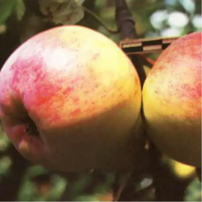 Позднеосенний сорт яблони, полученный скрещиванием Антоновки краснобочка и SR 0523. Довольно густое дерево имеет быстрорастущую округлую крону. Зимостойкость данного сорта высокая и позволяет пережить холодные периоды средней полосы России, а благодаря гену Vm дерево обладает устойчивостью к четырем расам парши. Приносить плоды сорт Славянин начинает на 5 – 6 год роста и обладает высокой урожайностью. Крупные плоды имеют приплюснутую, коническую форму. Кожица яблок сухая и блестящая, не имеющая воскового налета. Окрас зеленовато – желтый с красными вкраплениями. Кремовая средней плотности мякоть очень нежная и сочная. Кисло – сладкий вкус сопровождается слабым ароматом. Плоды созревают в первой половине сентября и сохраняют свои полезные качества и вкус при надлежащем хранении до нового года.