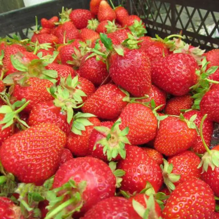 Земляника (Клубника) Царица. Сорт выведен в России, путем скрещивания сортов Вента и Редгонтлет. Сорт среднего срока созревания (с конца июня по конец июля). Куст полураскидистый, среднеоблиственный небольшой высоты. Соцветия расположены компактно на уровне или ниже листьев. Цветки гермафродиты. Первые ягоды красного цвета достигают веса 50г, далее в среднем 35-45 гр. Мякоть ягод красная или алая, плотная, сочная, по вкусу кисло-сладкая, со слабым земляничным ароматом. Сорт хорошо переносит зиму. Жаркие и засушливые месяцы переносит нормально. Устойчив ко всем грибным болезням.